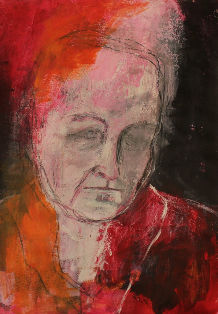 Akryyli, öljypastelli, hiili pahville / Acrylic, oil pastels, charcoal on cardboard